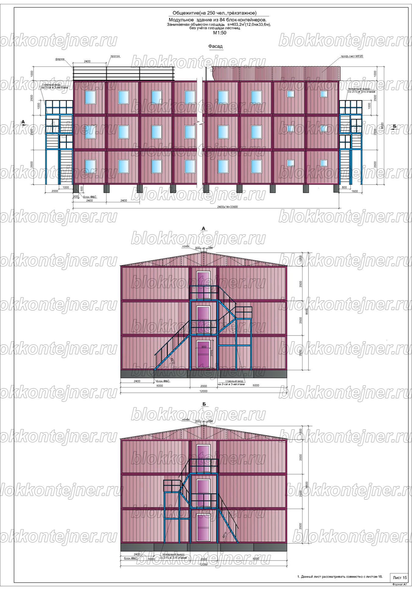 Трехэтажное общежитие на 250 человек из 84 БК